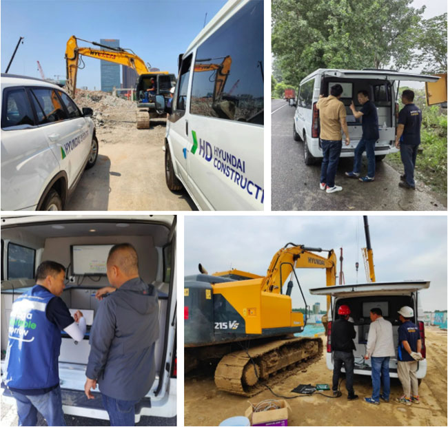 另外,為了幫助用戶了解自己設(shè)備的運行狀況,為客戶的設(shè)備做好體檢服務(wù),現(xiàn)代工程機械專門裝備了用于設(shè)備檢測的服務(wù)診斷車。從6月起,服務(wù)診斷車每月奔波于不同區(qū)域用戶設(shè)備之間,為用戶設(shè)備進行檢測診斷,并根據(jù)用戶設(shè)備運行狀況提供指導性保養(yǎng)維護建議。